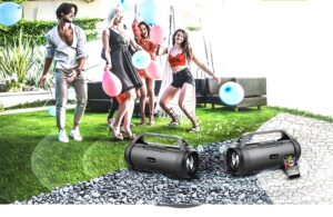 Δυνατό φορητό ηχείο Bluetooth, TWS, ανθεκτικό στο νερό, συνολικής ισχύος 30W RMS. Είναι αρκετά δυνατό για εσωτερικούς και εξωτερικούς χώρους και παράγει καθαρό ήχο σε όλες τις εντάσεις. Διαθέτει χερούλι για να μπορείτε να το μεταφέρετε εύκολα όπου και αν βρίσκεστε. Με πιστοποίηση IPX5, μπορεί να σας συνοδεύσει στην παραλία, την πισίνα ή το σκάφος χωρίς φόβο από τα νερά.
