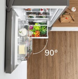 Τοποθετήστε το ψυγείο στο σημείο που σας εξυπηρετεί. Τα κοινά μοντέλα ψυγείων στην αγορά χρειάζονται περίπου 10 εκατοστά απόσταση μέχρι τον τοίχο ή από τα γύρω έπιπλα, για λειτουργικούς και πρακτικούς λόγους. Ακόμα και για να ανοίξουν η πόρτα και τα συρτάρια τους. Χάρη στην πρωτοποριακή τεχνολογία Perfect Fit, οι ελεύθεροι ψυγειοκαταψύκτες Bosch μπορούν να τοποθετηθούν ακριβώς δίπλα σε τοίχους και έπιπλα χωρίς ούτε χιλιοστό χώρου αναξιοποίητο.