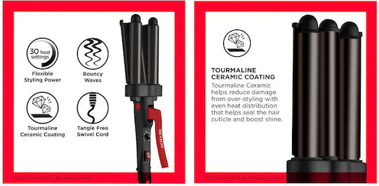 Το Revlon Wave Master Jumbo Waver χρησιμοποιεί ένα μοναδικό σχεδιασμό τριών κυλίνδρων και βοηθά στην εύκολη δημιουργία κυματισμών, επιτυγχάνοντας ένα πιο φυσικό look. Διαθέτει 30 ρυθμίσεις θερμοκρασίας έως 190 °C, τις οποίες μπορείς να προσαρμόζεις ανάλογα με τις ανάγκες των μαλλιών σου. Ενισχύει τη λάμψη και μειώνει τη ζημιά από το υπερβολικό styling σφραγίζοντας την επιδερμίδα της τρίχας. Το περιστρεφόμενο καλώδιο σού επιτρέπει να κινείσαι άνετα κατά τη διάρκεια του styling.