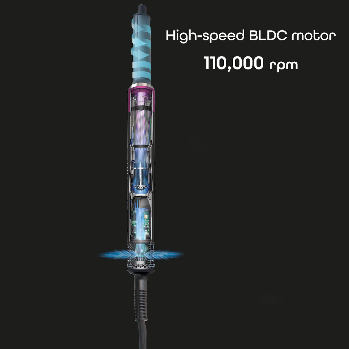 Ο κινητήρας BLDC υψηλής ταχύτητας (πάνω από 110.000 RPM) προσφέρει ισχυρή ροή αέρα με χαμηλό θόρυβο και μεγαλύτερη διάρκεια ζωής της συσκευής . Πολύ πιο ελαφρύ από τα κλασικά πιστολάκια μαλλιών, πιο αποδοτικά και φιλικά προς το περιβάλλον, καθώς καταναλώνουν λιγότερη ενέργεια για την ίδια απόδοση.
