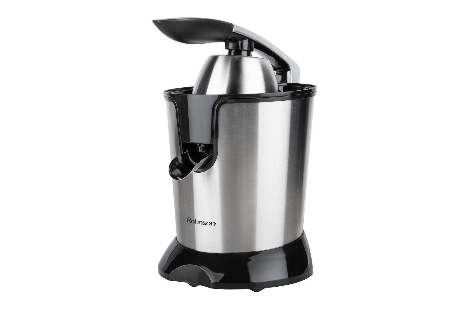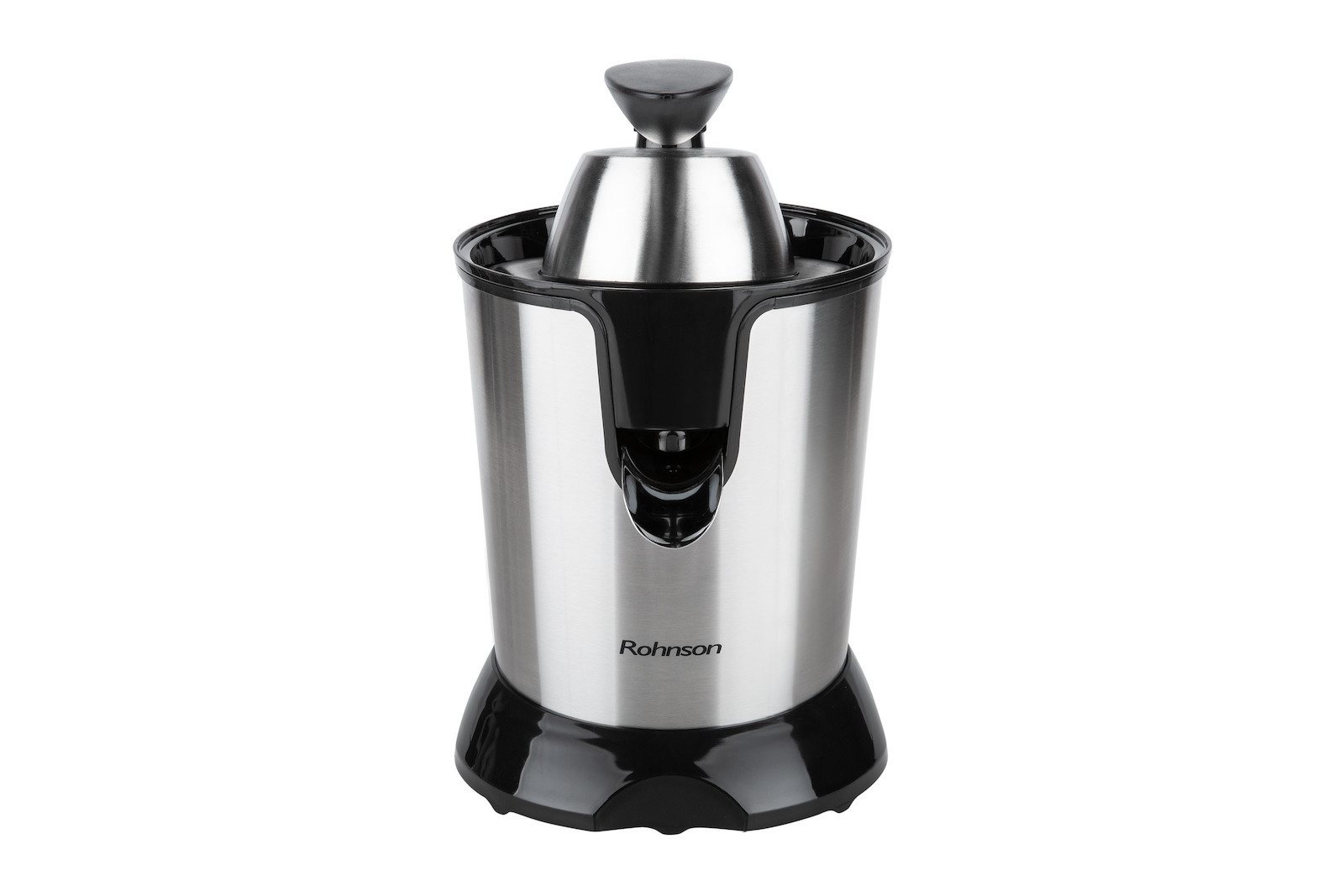 Ηλεκτρικό Στυπτήριο R-411 της Rohnson. Το μοτέρ των 600W, σας εξασφαλίζει μέγιστη απόδοση, παράγοντας τέλεια ποσότητα χυμού από κάθε κομμάτι εσπεριδοειδών. Απολαύστε το χυμό σας χωρίς πολτό που φιλτράρεται μέσω του ανοξείδωτου φίλτρου ή προσθέστε λίγο πολτό, ενισχύοντας τα οφέλη με φυτικές ίνες και πρόσθετα θρεπτικά συστατικά. Με 2 εναλλάξιμους κώνους στυψίματος (μεγάλος για πορτοκάλι/γκρέιπφρουτ και μικρός για λεμόνι/λάιμ). Είναι συνεχούς ροής για να σερβίρετε απευθείας στο ποτήρι σας.