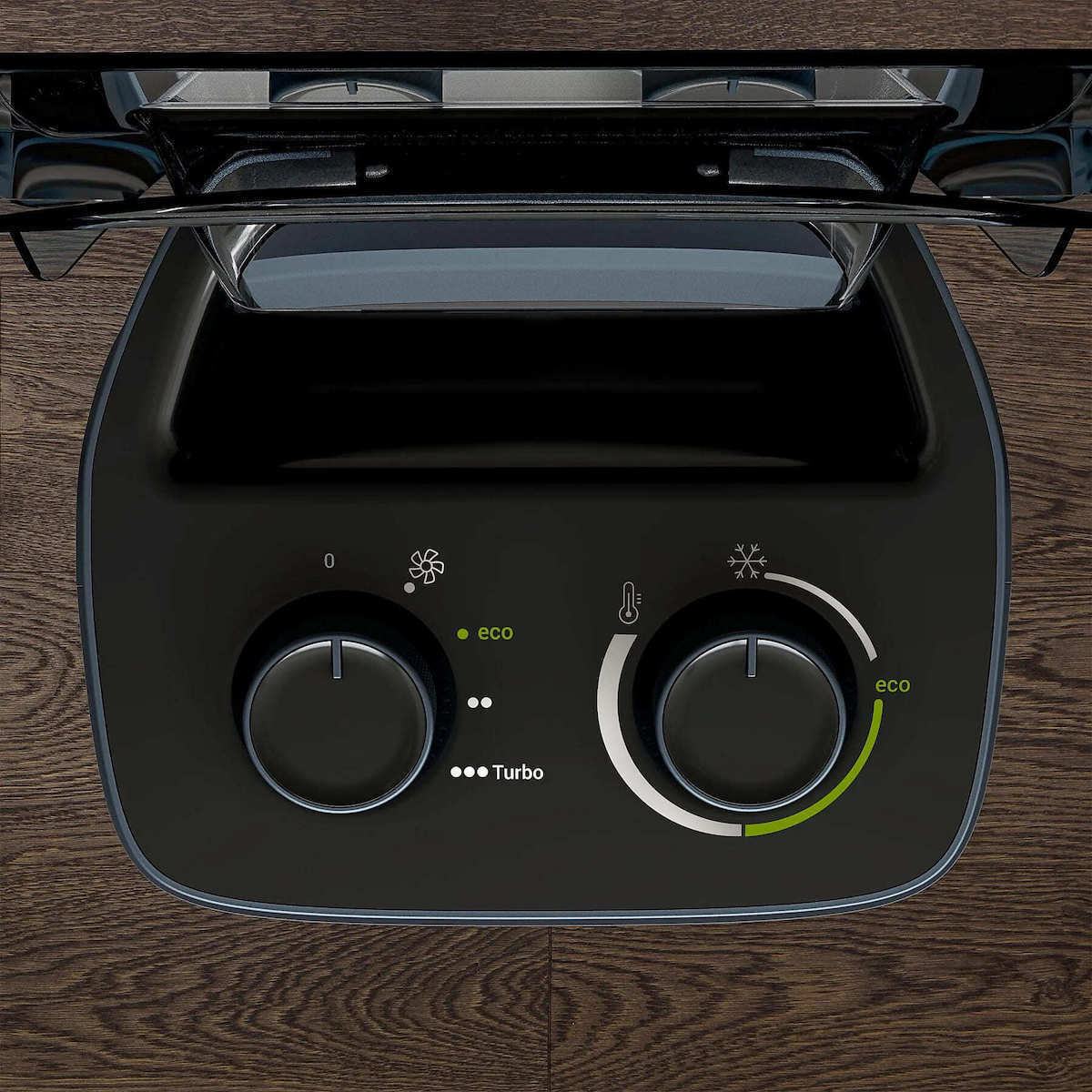 Διαθέτει ρυθμιζόμενο θερμοστάτη, για να προσαρμόζετε ή να διατηρείτε στα επιθυμητά πλαίσια τη θερμοκρασία του χώρου, καθ’ όλη τη διάρκεια χρήσης της συσκευής. Μπορείτε να ρυθμίσετε και να επιλέξετε ανάμεσα σε 2 βαθμίδες θέρμανσης, ανάλογα με τις ιδιαιτερότητες του δωματίου και τις προσωπικές σας ανάγκες.
