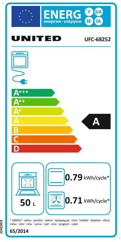 Κουζίνα εμαγιέ United χωρητικότητας 50lt, με 8 λειτουργίες, σταθερούς διακόπτες, αφαιρούμενη πόρτα φούρνου με εντελώς επίπεδη επιφάνεια για εύκολο καθάρισμα και με μεγάλο χώρο αποθήκευσης σκευών.